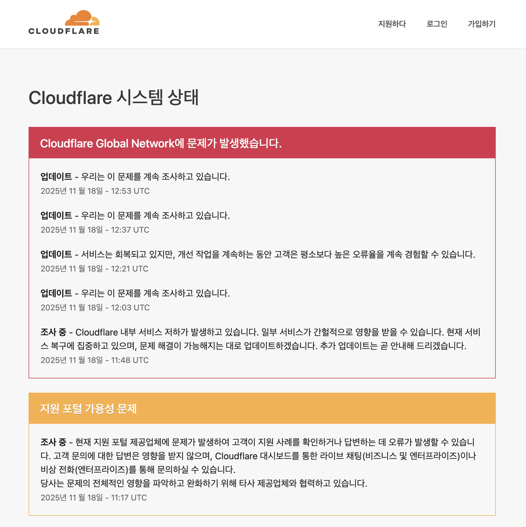 클라우드 플레이어 전 대역으로 장애입니다.